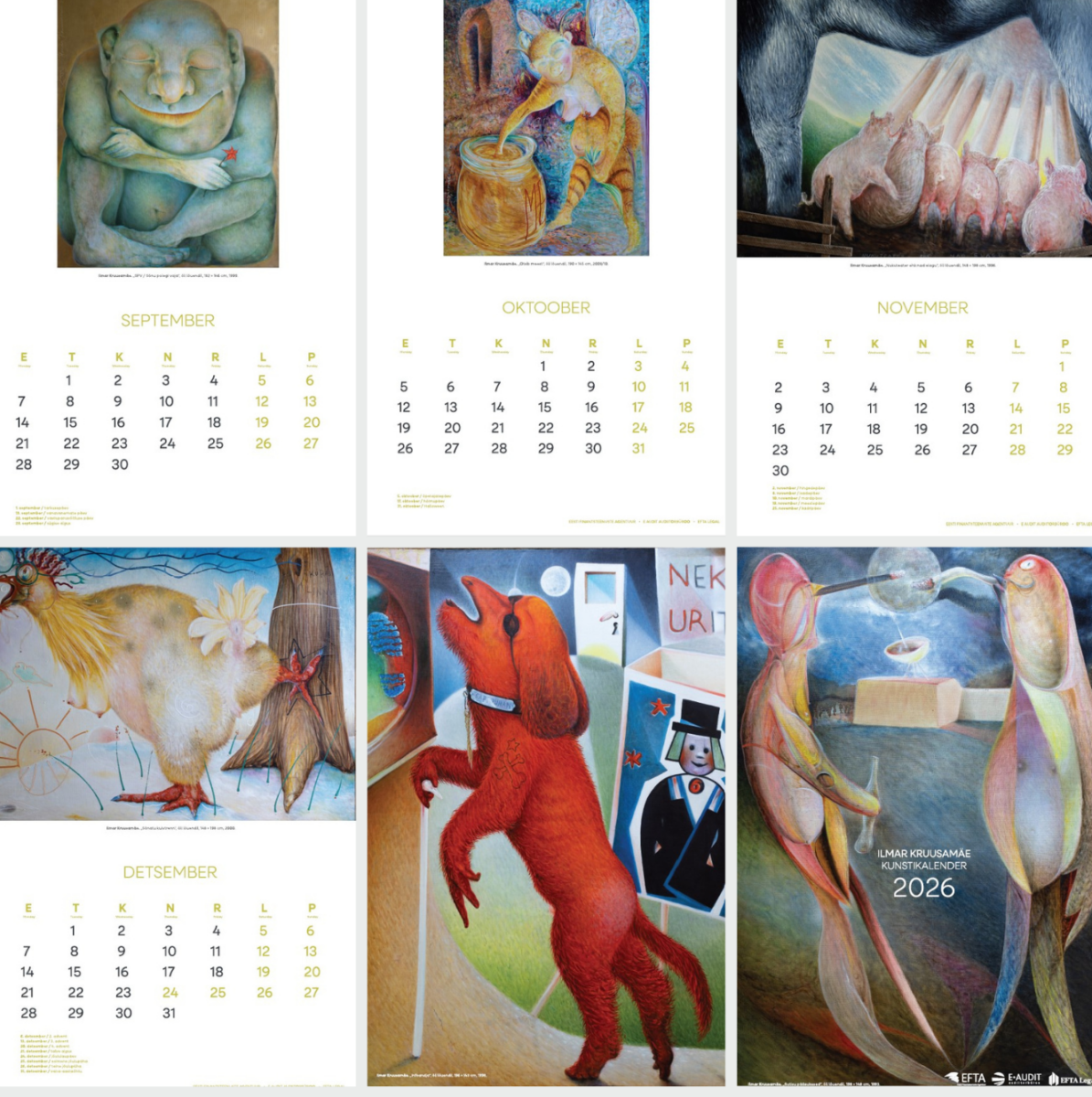 Kui soovid, et Ilmar Kruusamäe kunst saadaks sind läbi 2026. aasta, kirjuta meile või helista: kertu.hein@efta.ee, tel 730 2190.